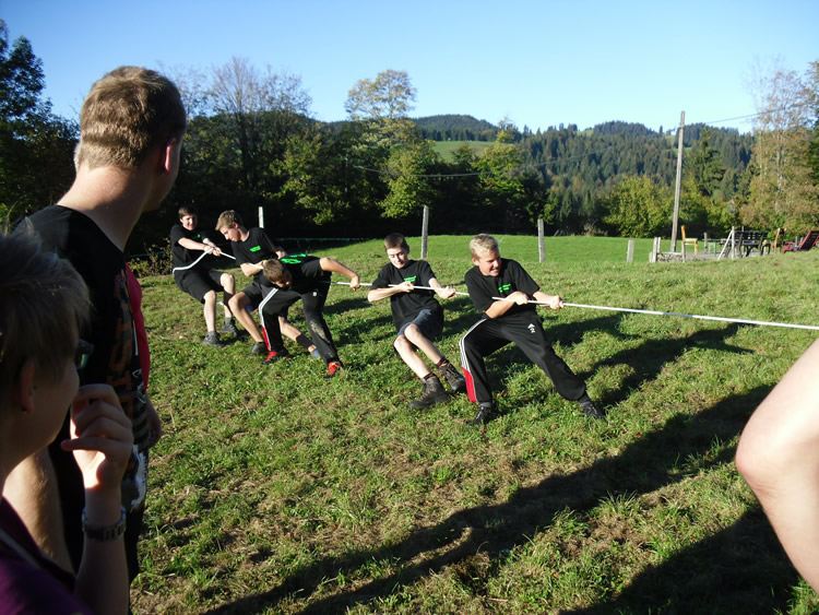 So mussten wir z. B. alle über eine ca. 1,40 Meter hoch gespannte Schnur kommen, ohne dass sie einer berührt.