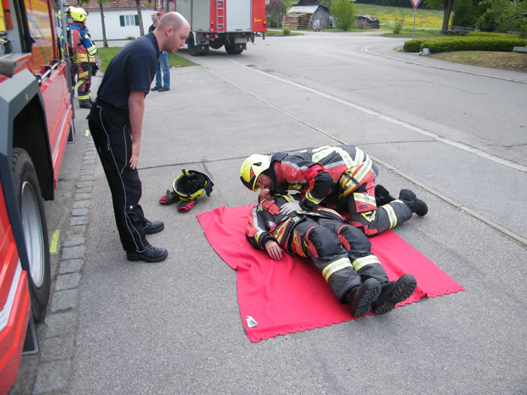 Dort angekommen ging es mit kleineren Übungen, wie dem Transportieren von Patienten mit verschiedenen Tragen oder dem richtigen aufstellen und auf- bzw. absteigen einer Leiter weiter.