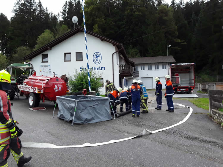 Am Montag, den 08. Juli fand bei sonnigem Wetter die monatliche Jugendübung statt. Dabei erlernten die Jugendfeuerwehrler den Umgang mit einer Saugleitung und die Wasserförderung aus offenen Gewässern.